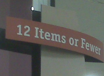 … too bad the next checkout aisle had a handwritten sign that said “12 items or less.” At least they got the permanent one right!